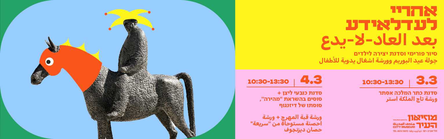 ستتيح الجولة (ساعة واحدة) للمشاركين فرصة التعرف على سحر احتفالات عيد البوريم في مدينة تل أبيب يافا، في الماضي والحاضر، بدءًا من أول احتفال العاد-لا-يدع الذي أقيم عام 1912. خلال الجولة، سنتعرف على القطع التاريخية الفريدة الموجودة في المتحف: التاج الأصلي الشهير للملكة إستير، والذي توجت به جميع ملكات إستير في مسابقات جمال الملكة إستير لأجيال. بالإضافة الى سرج الفرس سريعة، فرس أول رئيس بلدية لتل أبيب، مئير ديزنجوف - الذي لعب دور مردخاي في جميع مواكب عيد البوريم خلال حياته، راكباً فرساً سارت بوقار في مقدمة الموكب.